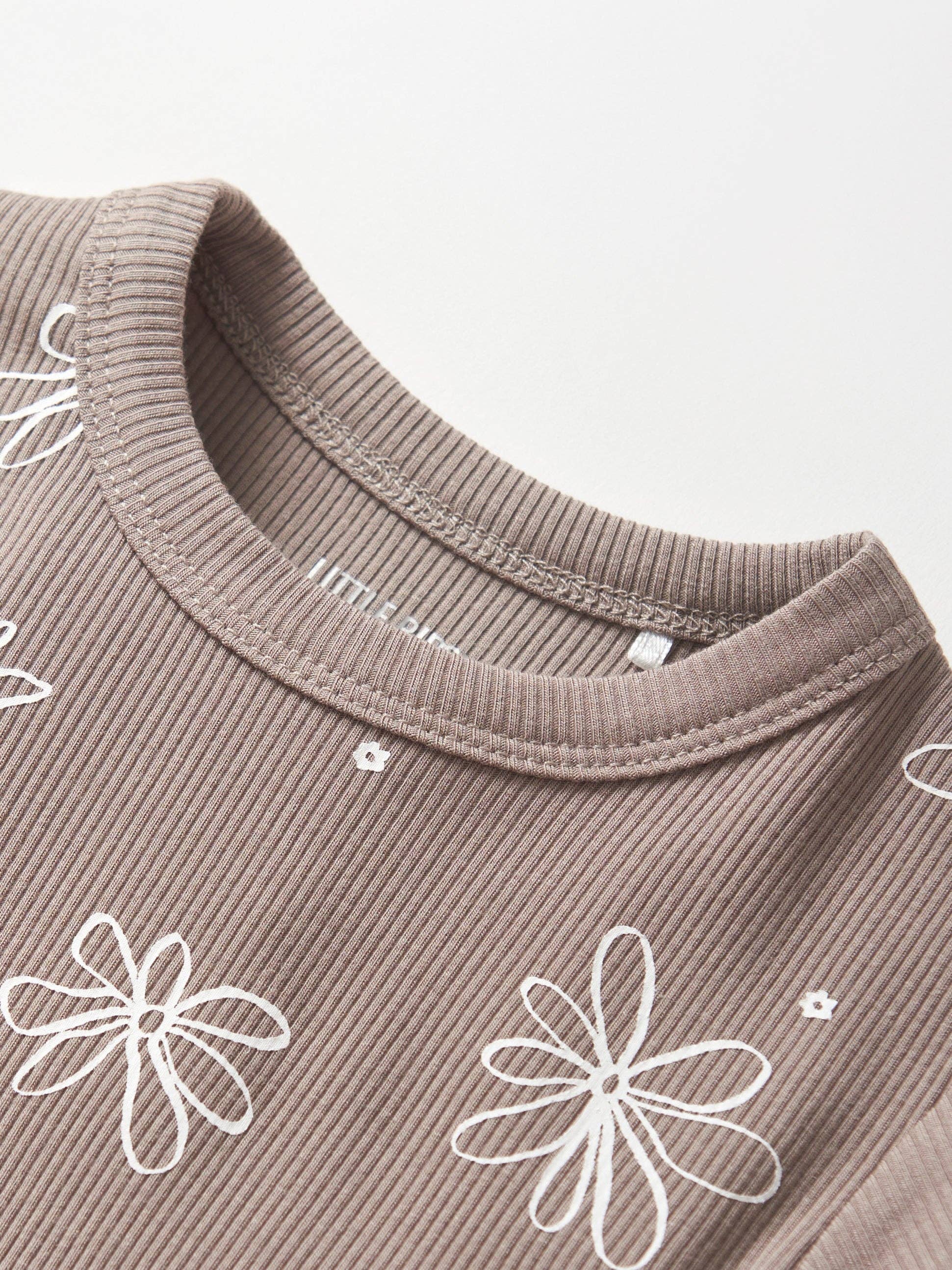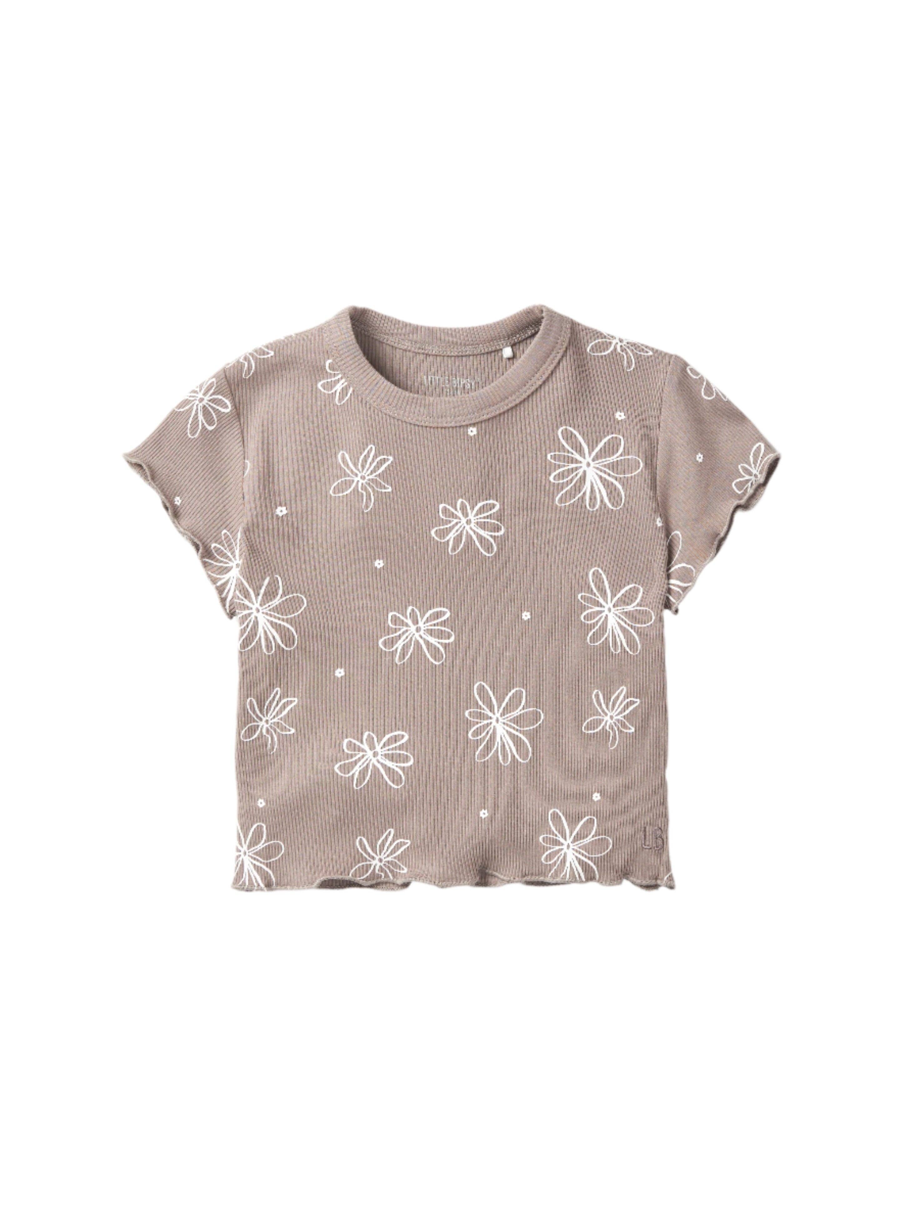 Little Bipsy Floral Ribbed Trim Tee